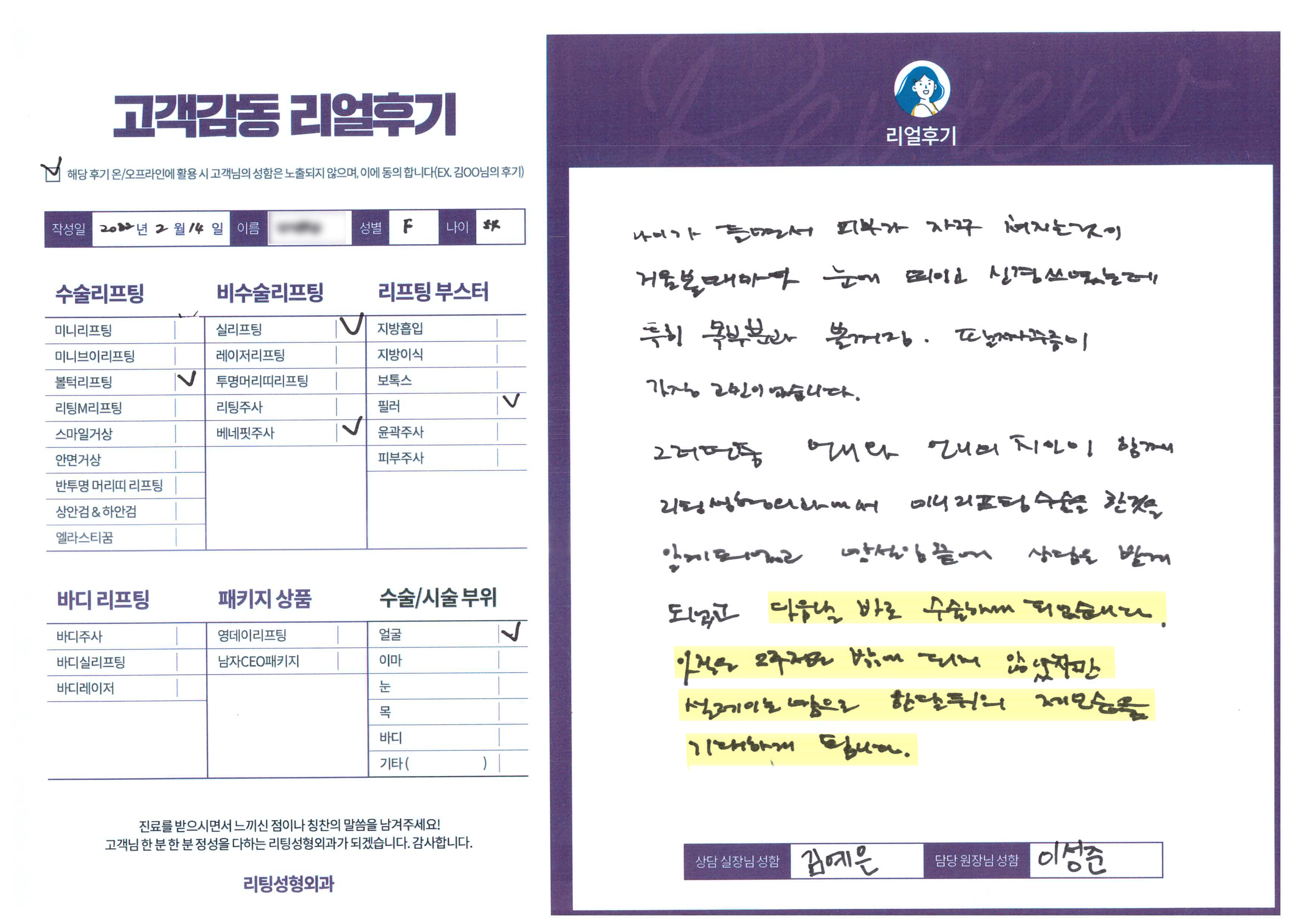 얼굴전체,눈수술리프팅