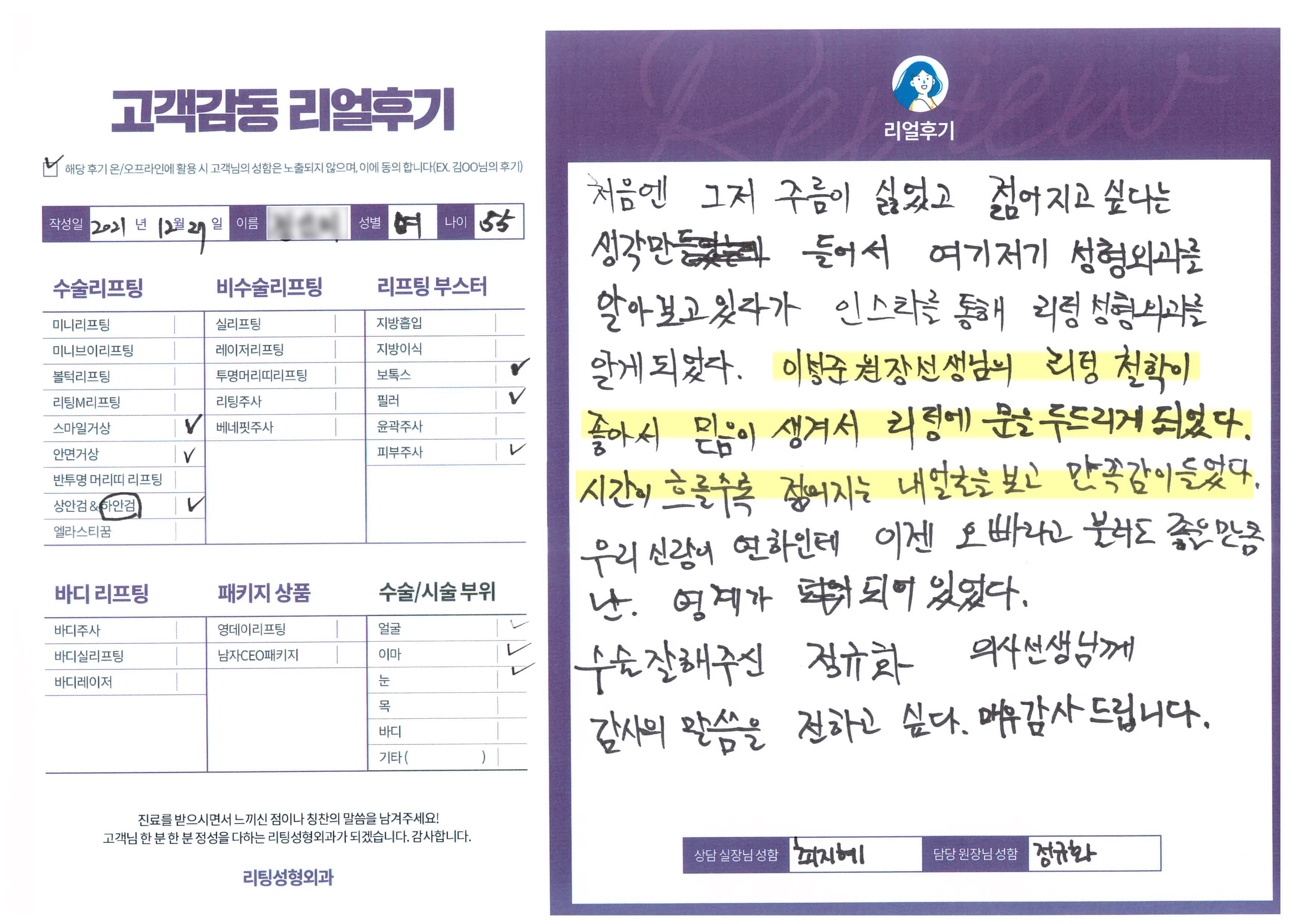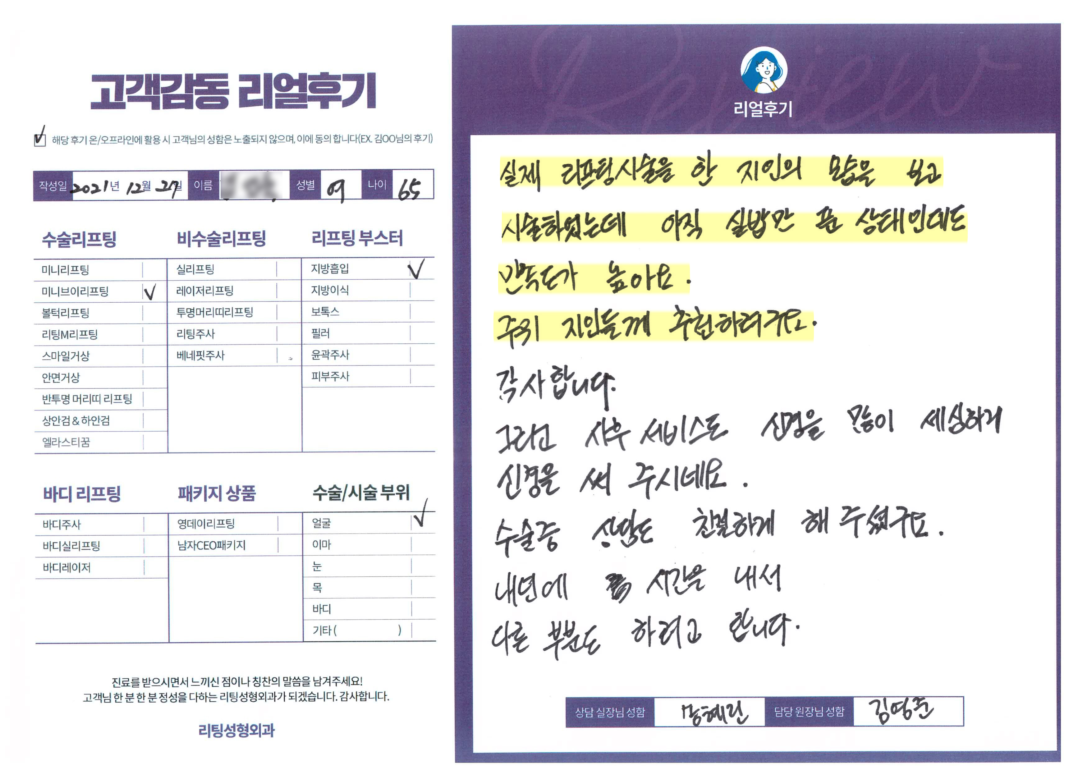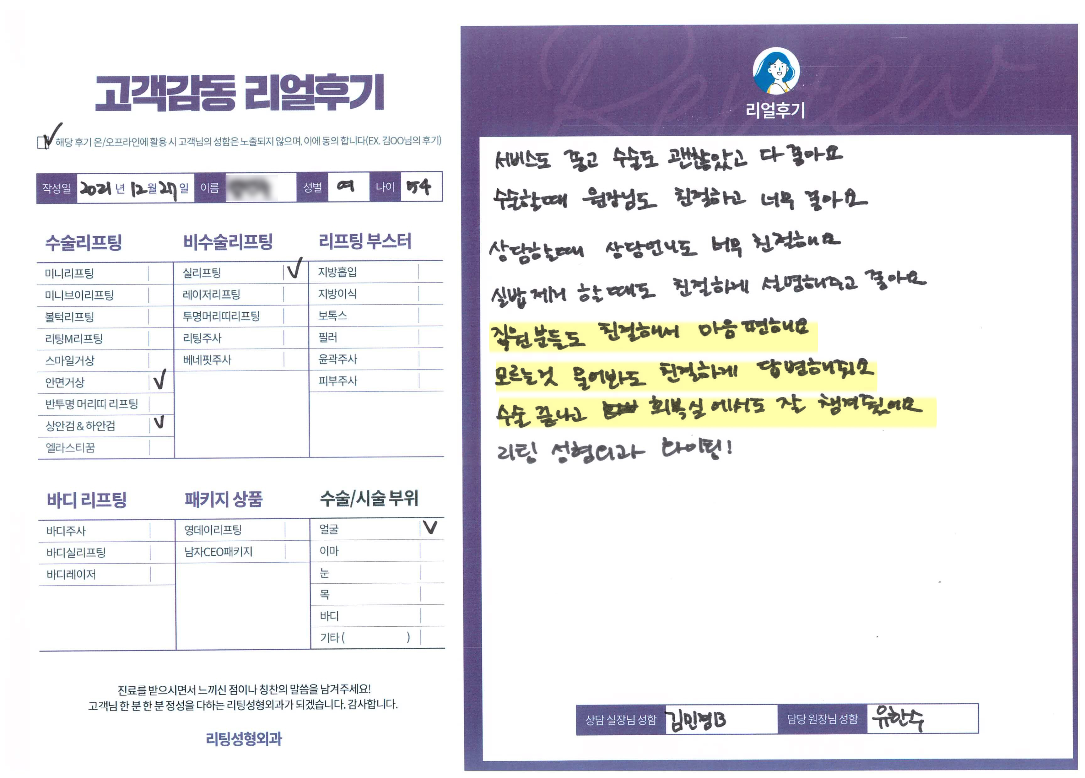 얼굴전체,눈,이마수술리프팅,리프팅부스터