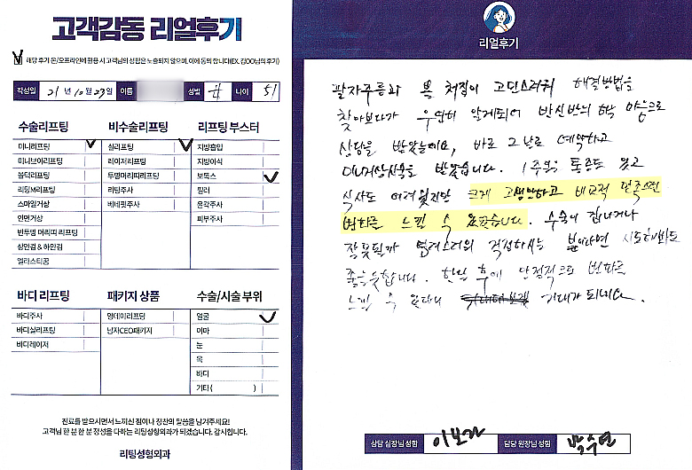 얼굴전체,이마수술리프팅,비수술 리프팅,리프팅부스터