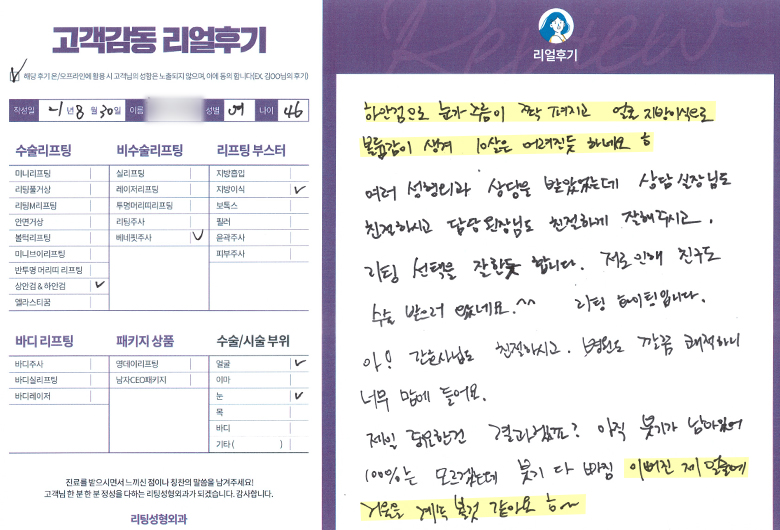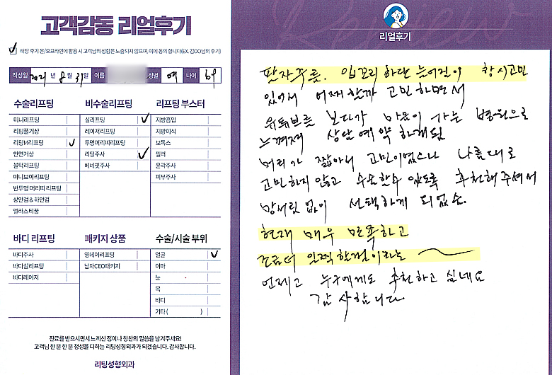 얼굴전체,눈수술리프팅,리프팅부스터