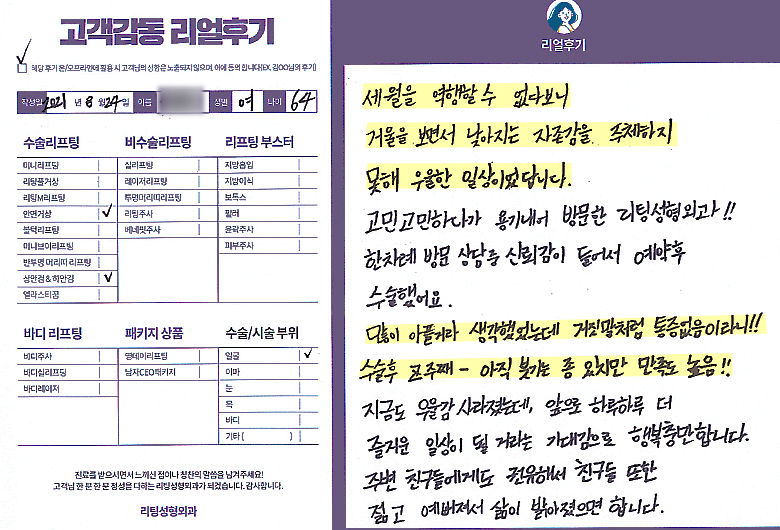 얼굴전체,이마,눈수술리프팅