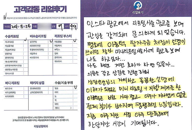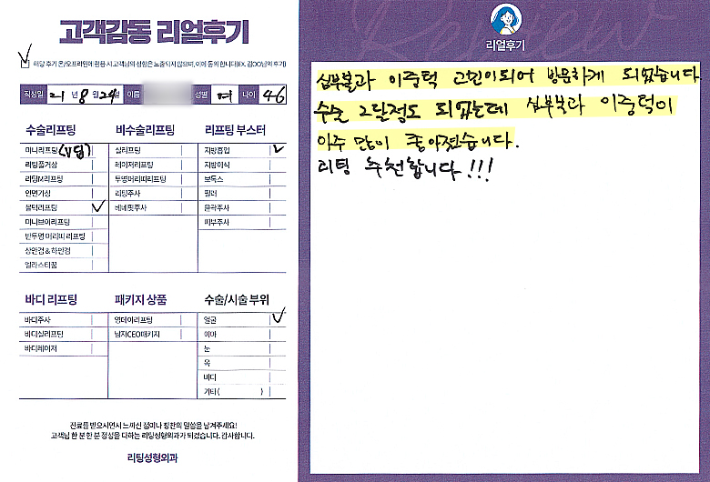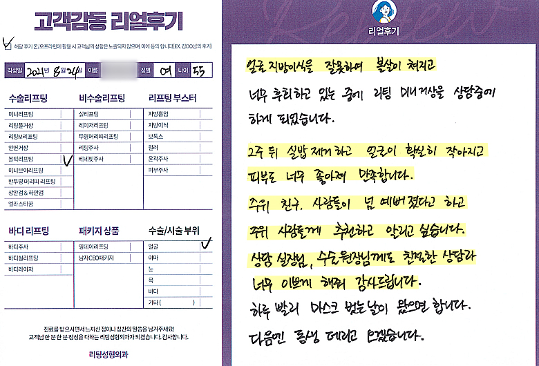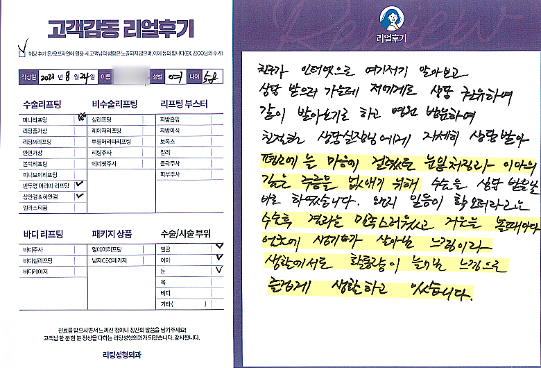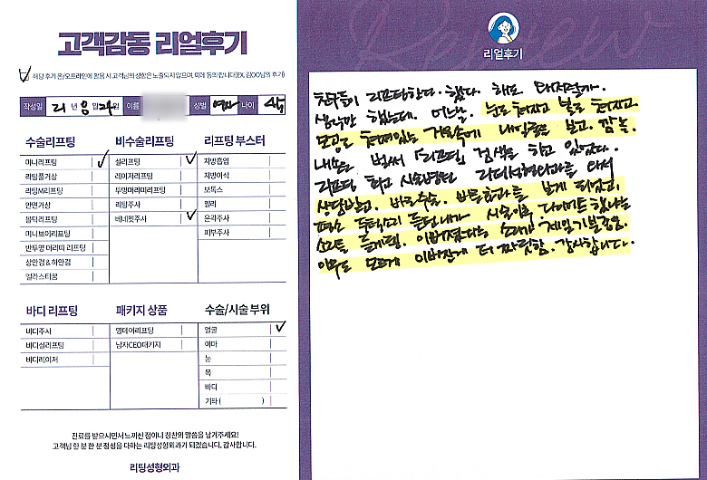 얼굴전체선OO님의 후기입니다.