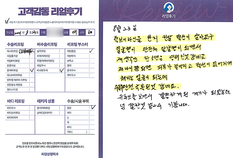 얼굴전체,눈수술리프팅,리프팅부스터