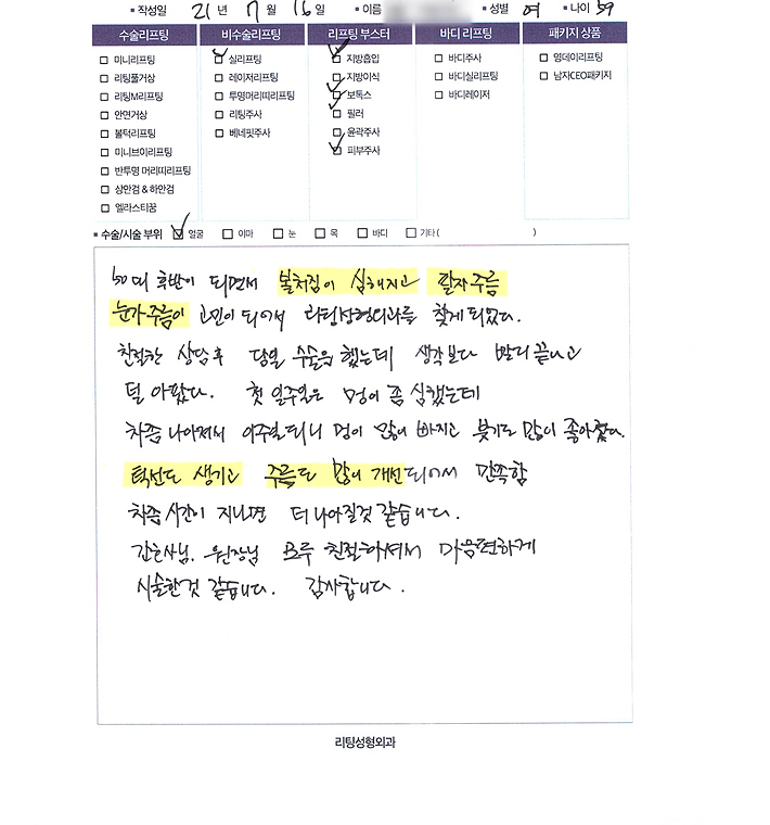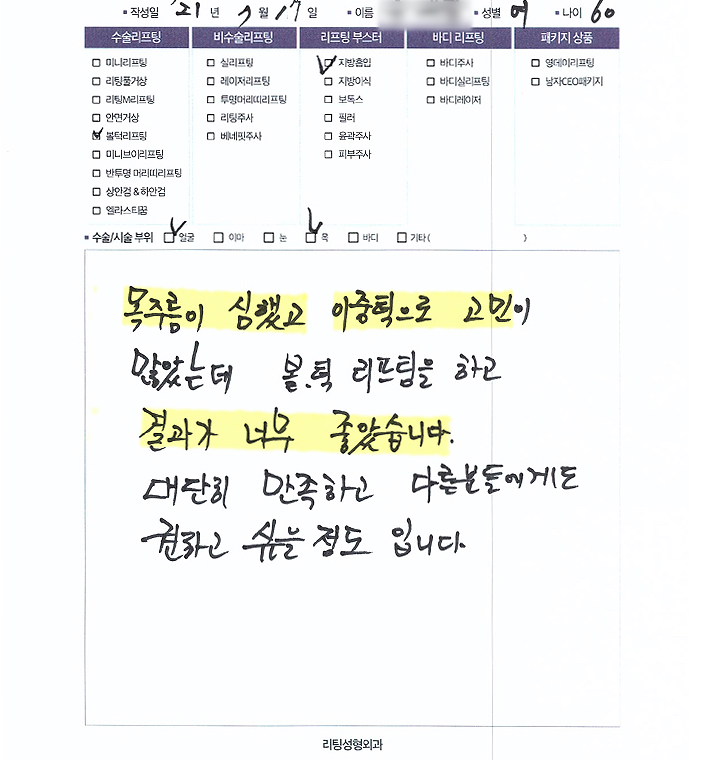 얼굴전체,목수술리프팅,리프팅부스터