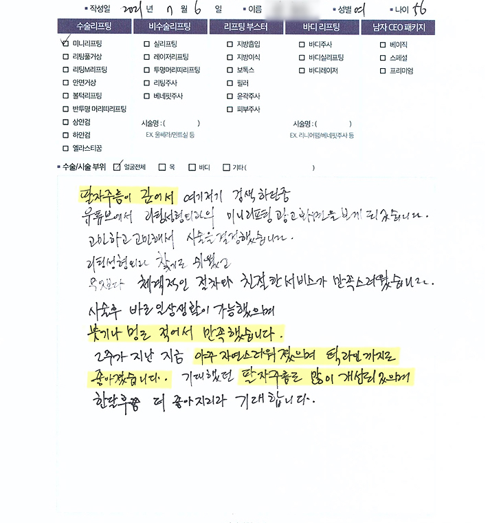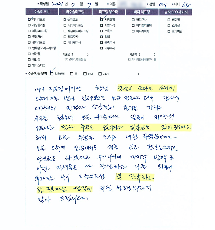 얼굴전체수술리프팅,비수술 리프팅