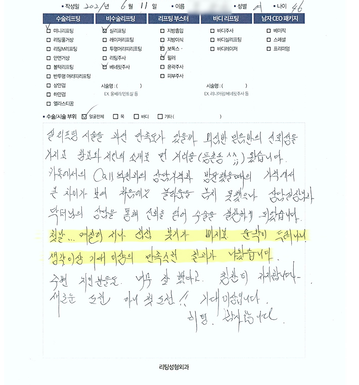 황OO님의 후기입니다