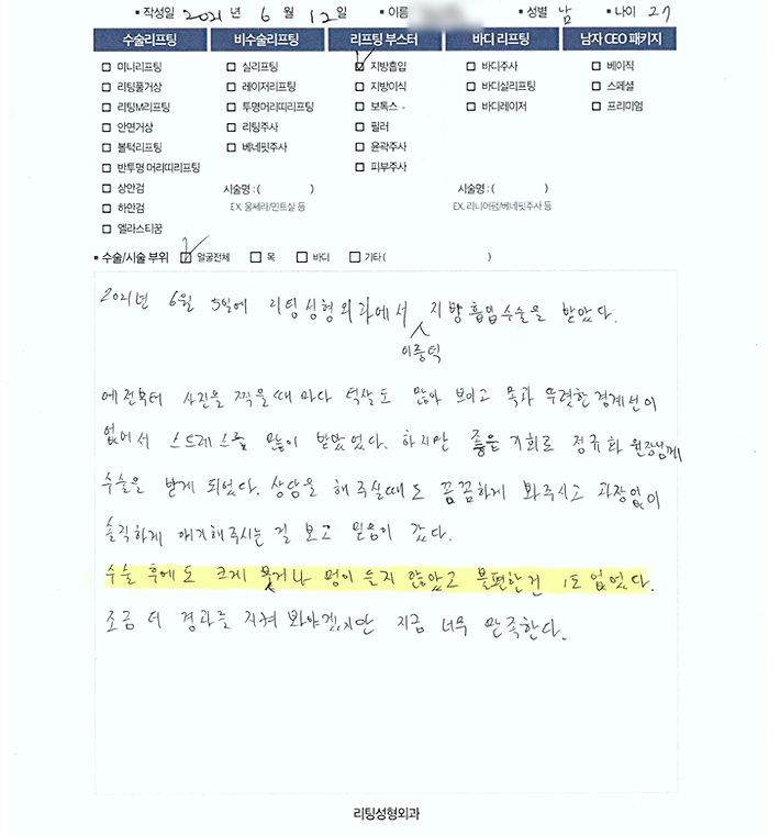 장OO님의 후기입니다