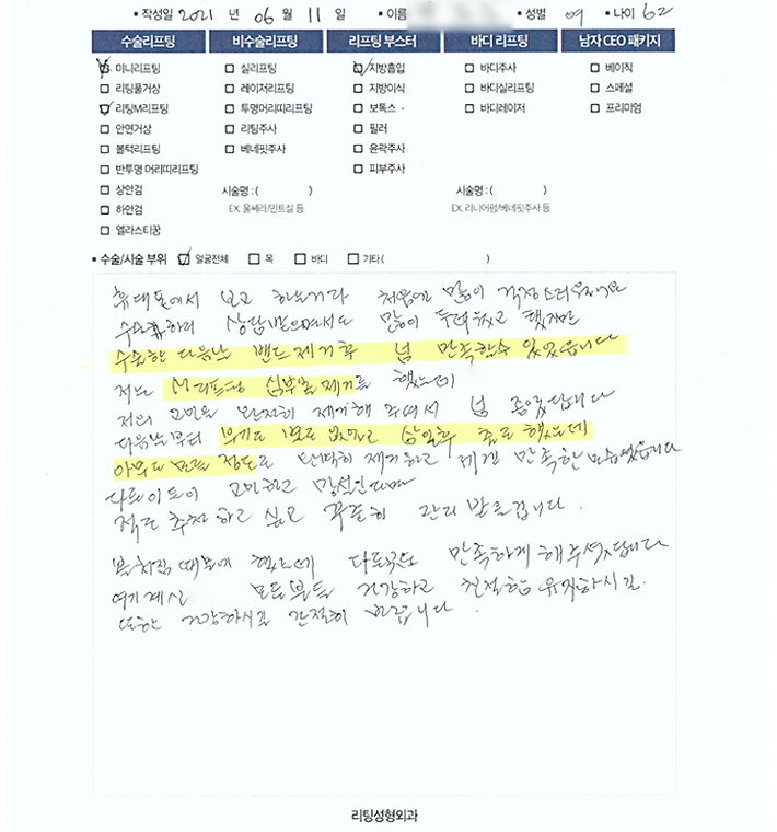 얼굴전체,목수술리프팅
