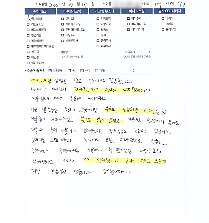 얼굴전체수술리프팅