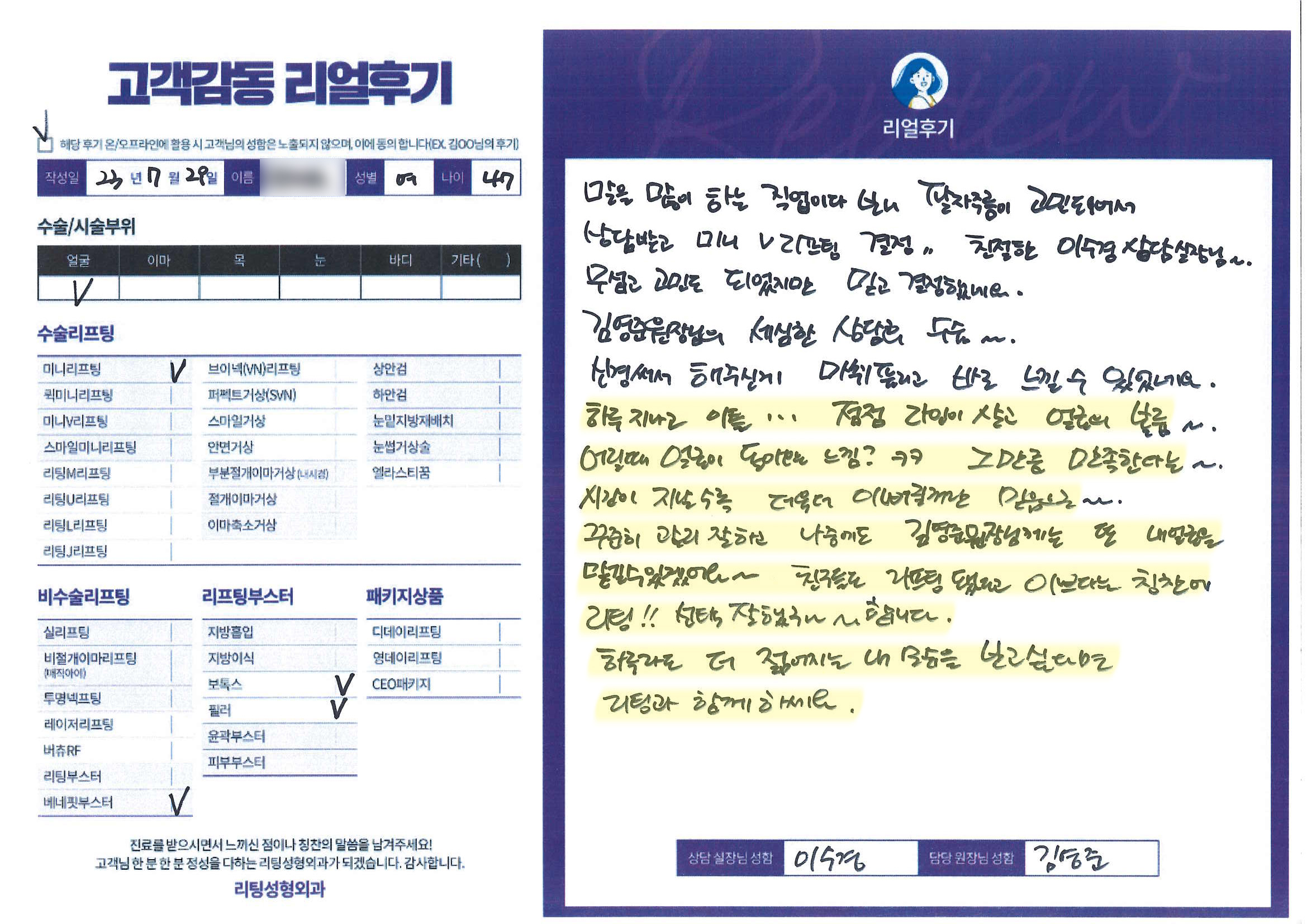 얼굴전체,이마,목수술리프팅,리프팅부스터