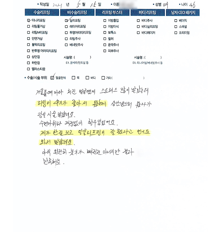 얼굴전체수술리프팅,비수술 리프팅