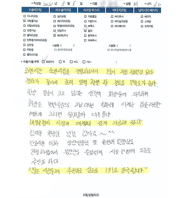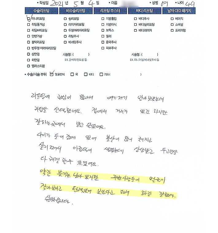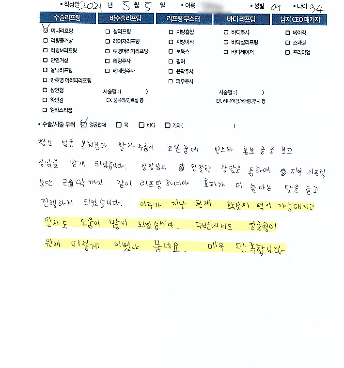 얼굴전체수술리프팅,리프팅부스터,비수술 리프팅