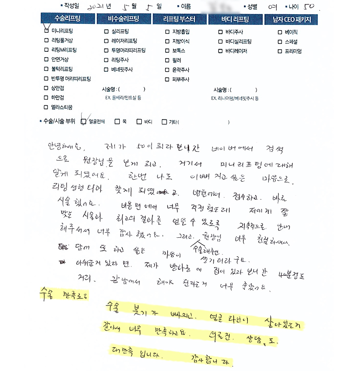 얼굴전체수술리프팅